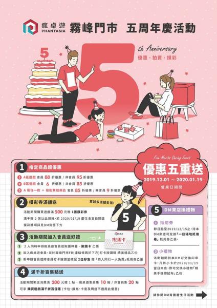 瘋桌遊台中霧峰店五周年慶正式開跑囉~~
